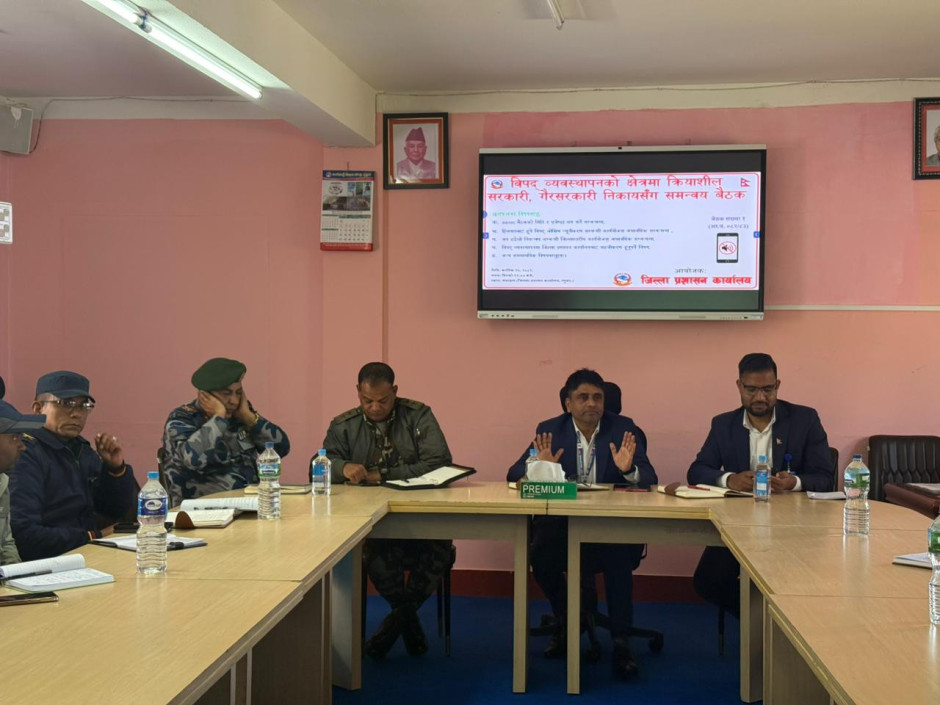 जिल्ला विपद् व्यवस्थापनको क्षेत्रमा क्रियाशील सरकारी र गै.स.स. निकायसँगको समन्वय बैठक सम्पन्न