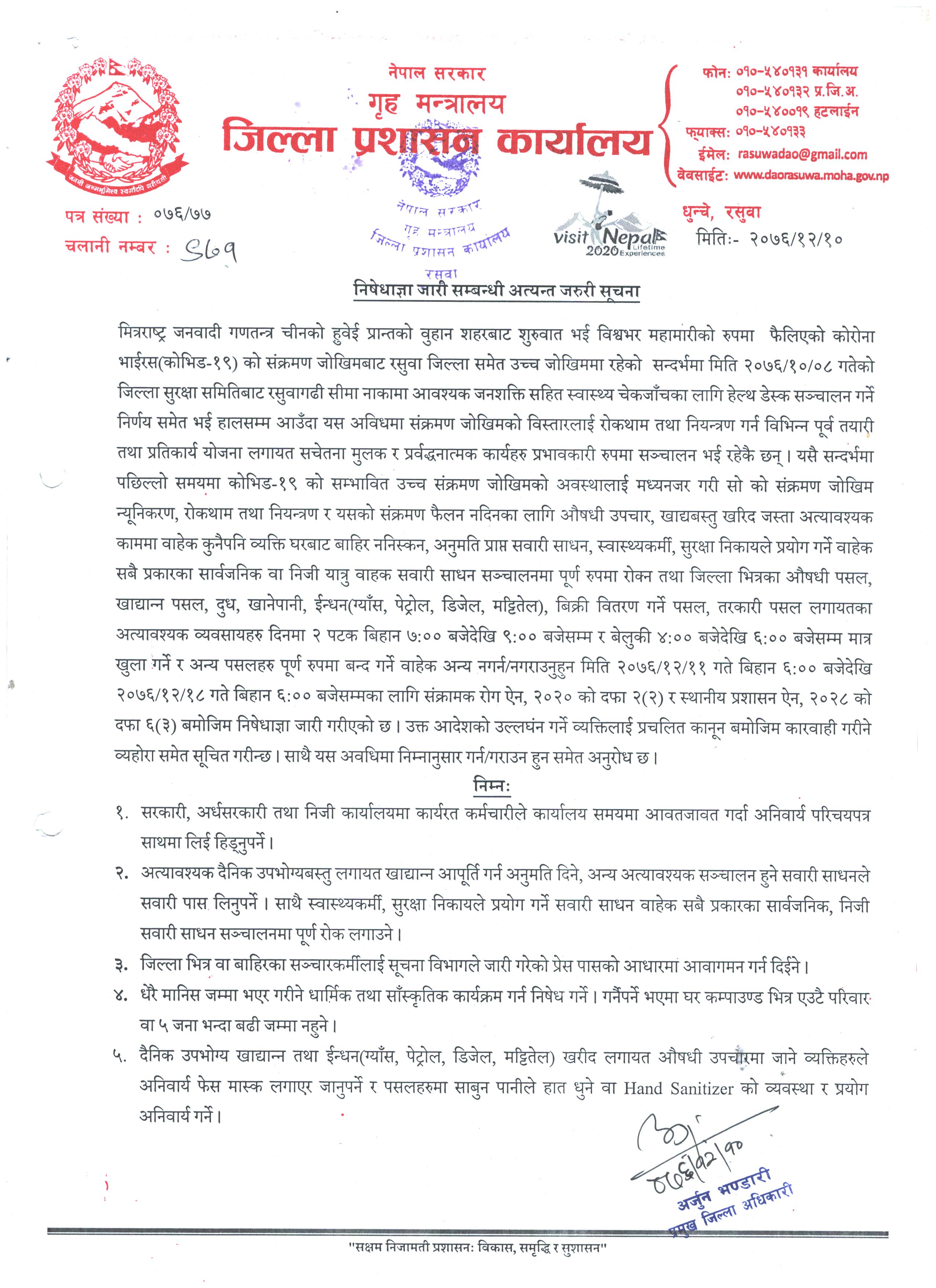 गृह मन्त्रालयबाट जारी (जेष्ठ २२, २०७७)