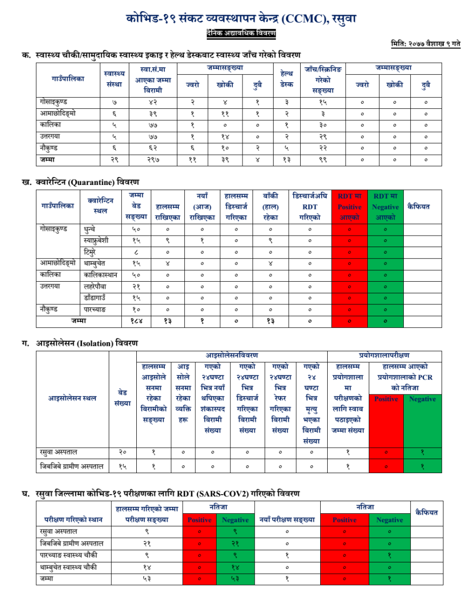 कोभिड-१९ संकट व्यवस्थापन केन्द्रको "दैनिक अद्यावधिक विवरण"
