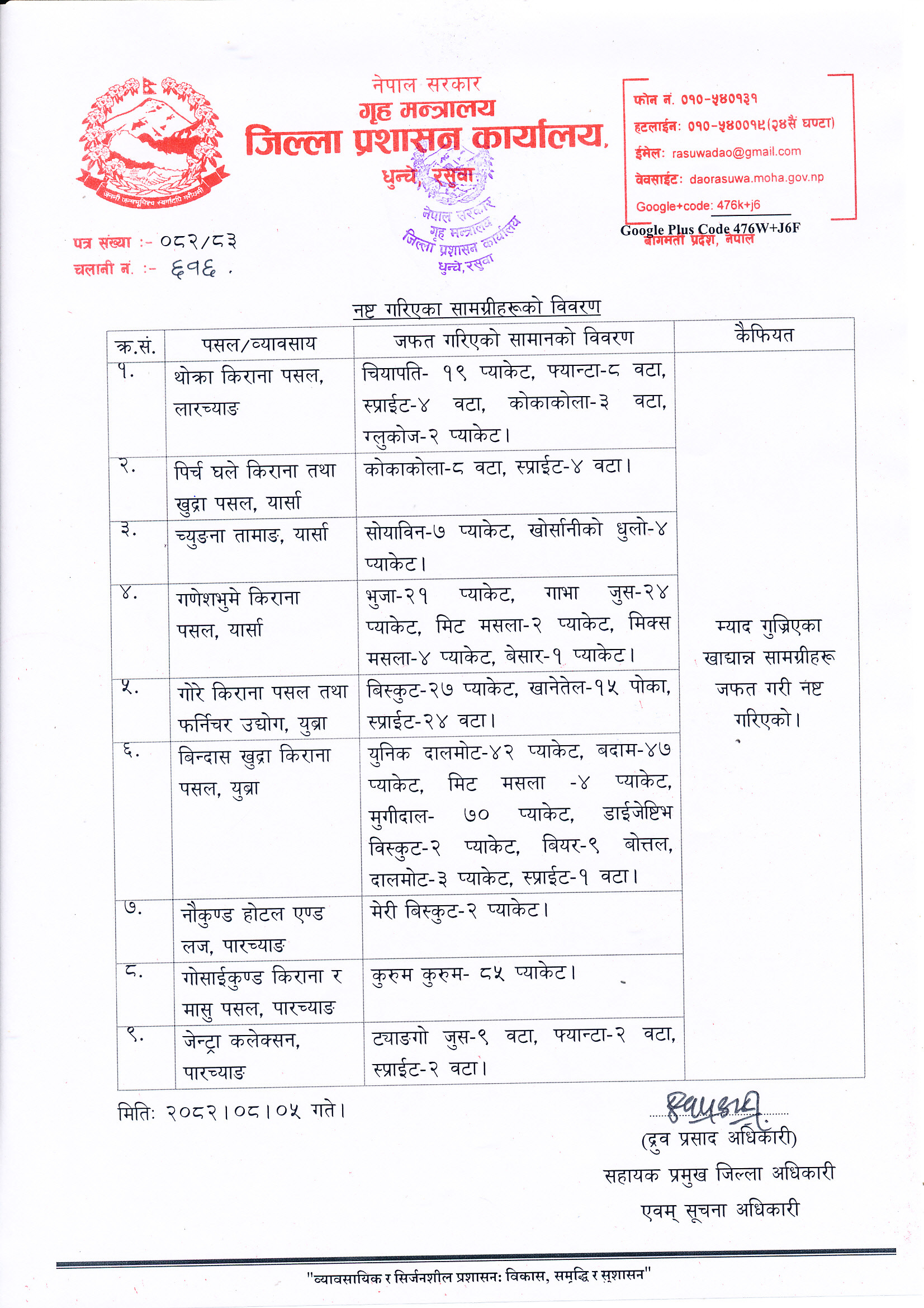 जिल्ला प्रशासन कार्यालय, रसुवा