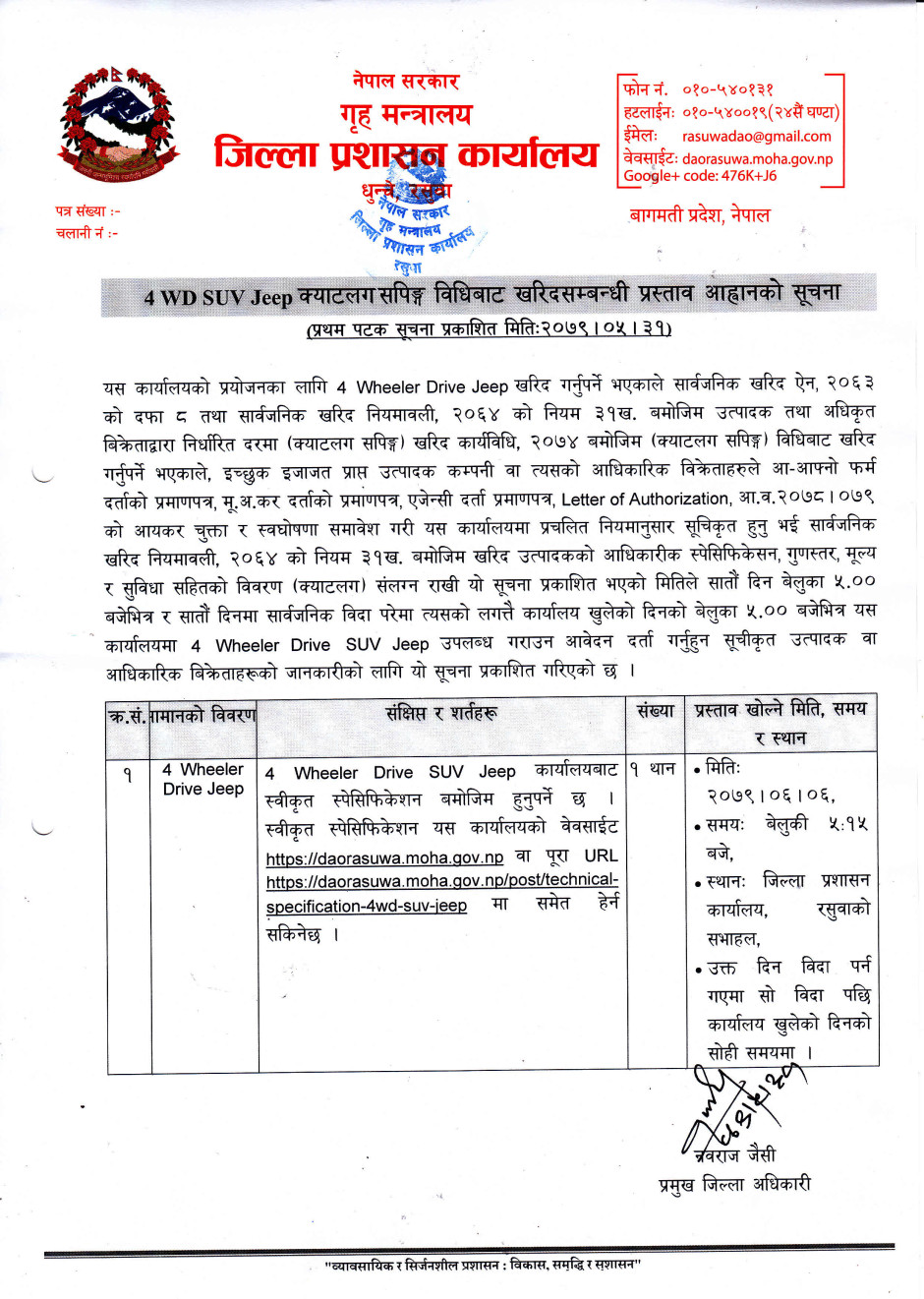 रसुवा जिल्लाका प्रमुख जिल्ला अधिकारीहरुको विवरण