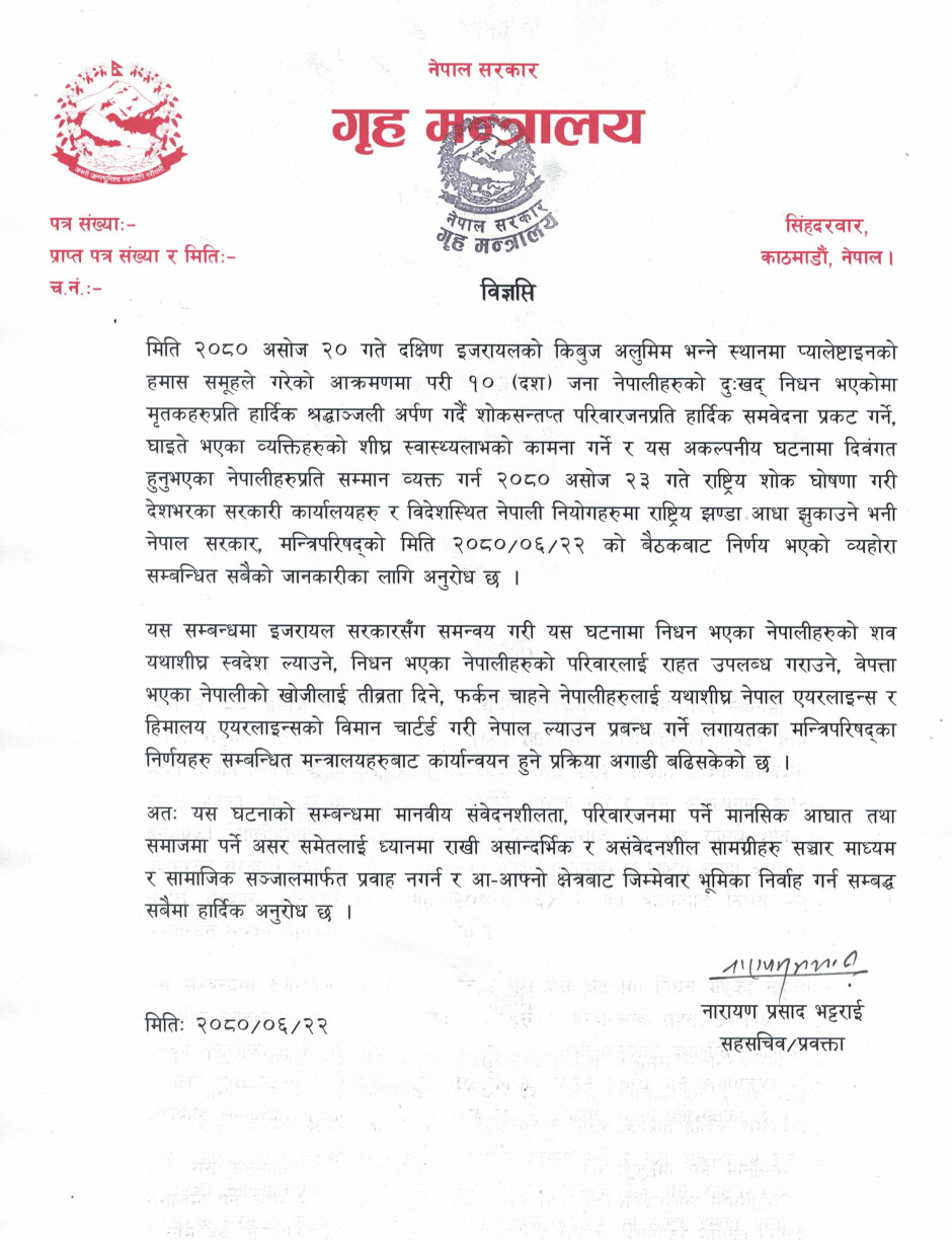 गृह मन्त्रालयबाट जारी विज्ञप्ती