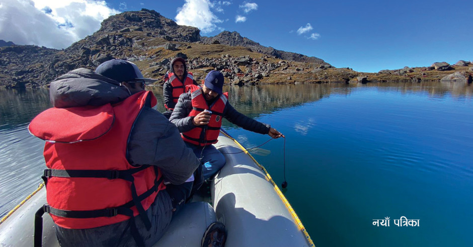 डुंगामा तालको छेउ, कुना, बीच सबै भागमा गएर गहिराइ नापिएको अनुसन्धानकर्ता वासुदेव न्यौपानेले बताए । ‘गोसाइँकुण्ड र भैरवकुण्डको सबै कुनाकुनामा, बीचमा ट्रान्जेक्ट राखेर, कुण्डको सबै क्षेत्र कभर होस्, कुनैप नि ठाउँ नछुटोस् भनेर तालको सबै क्षेत्र, कुनाकाच्चा, बीचको सबै भाग कभर हुने गरी फरकफरक बिन्दुहरूबाट त्यसको गहिराइ नापेका छौँ,’ उनले भने, ‘डुंगा चलाएर गहिराइ नापेका छौँ ।’
