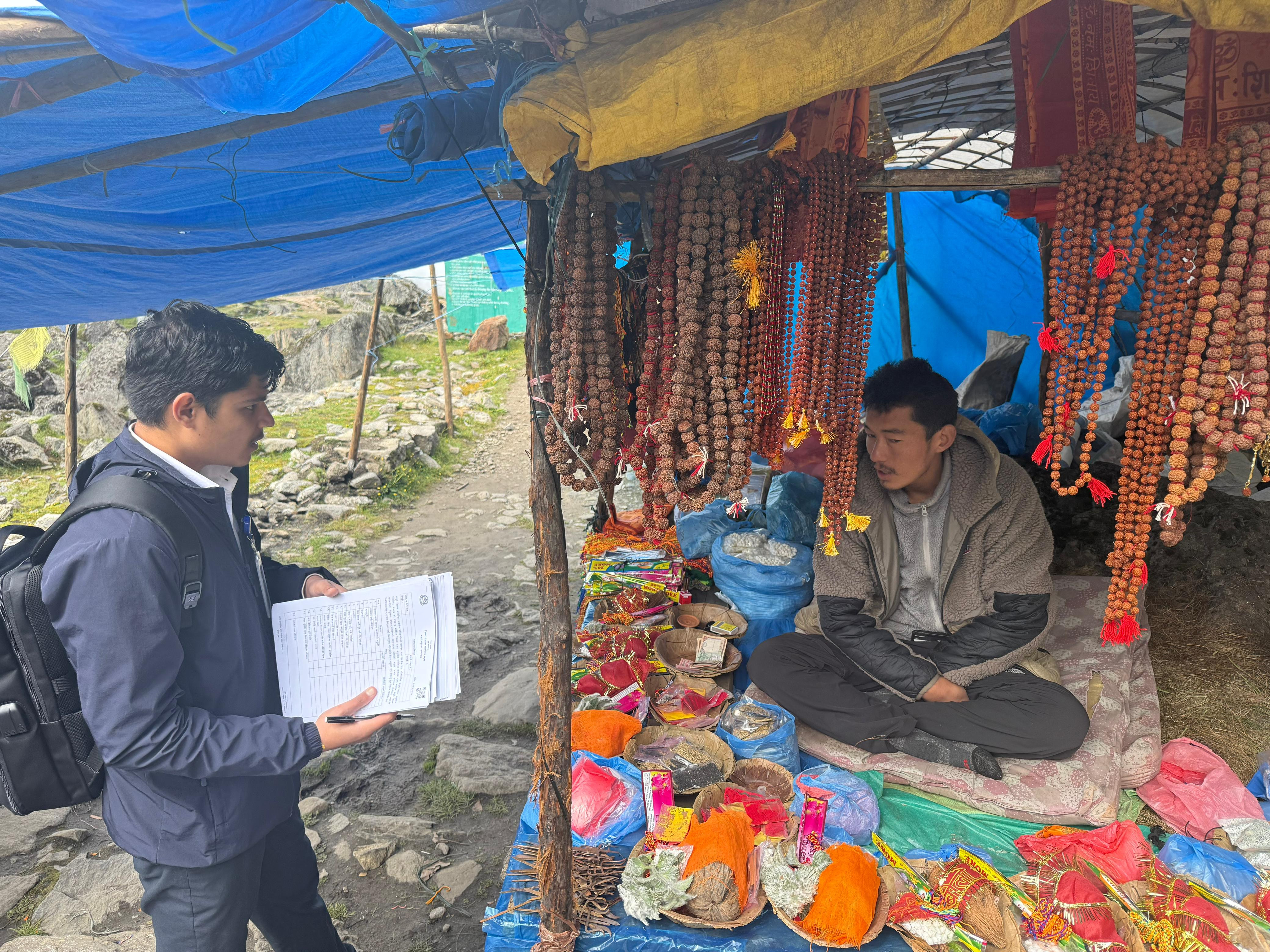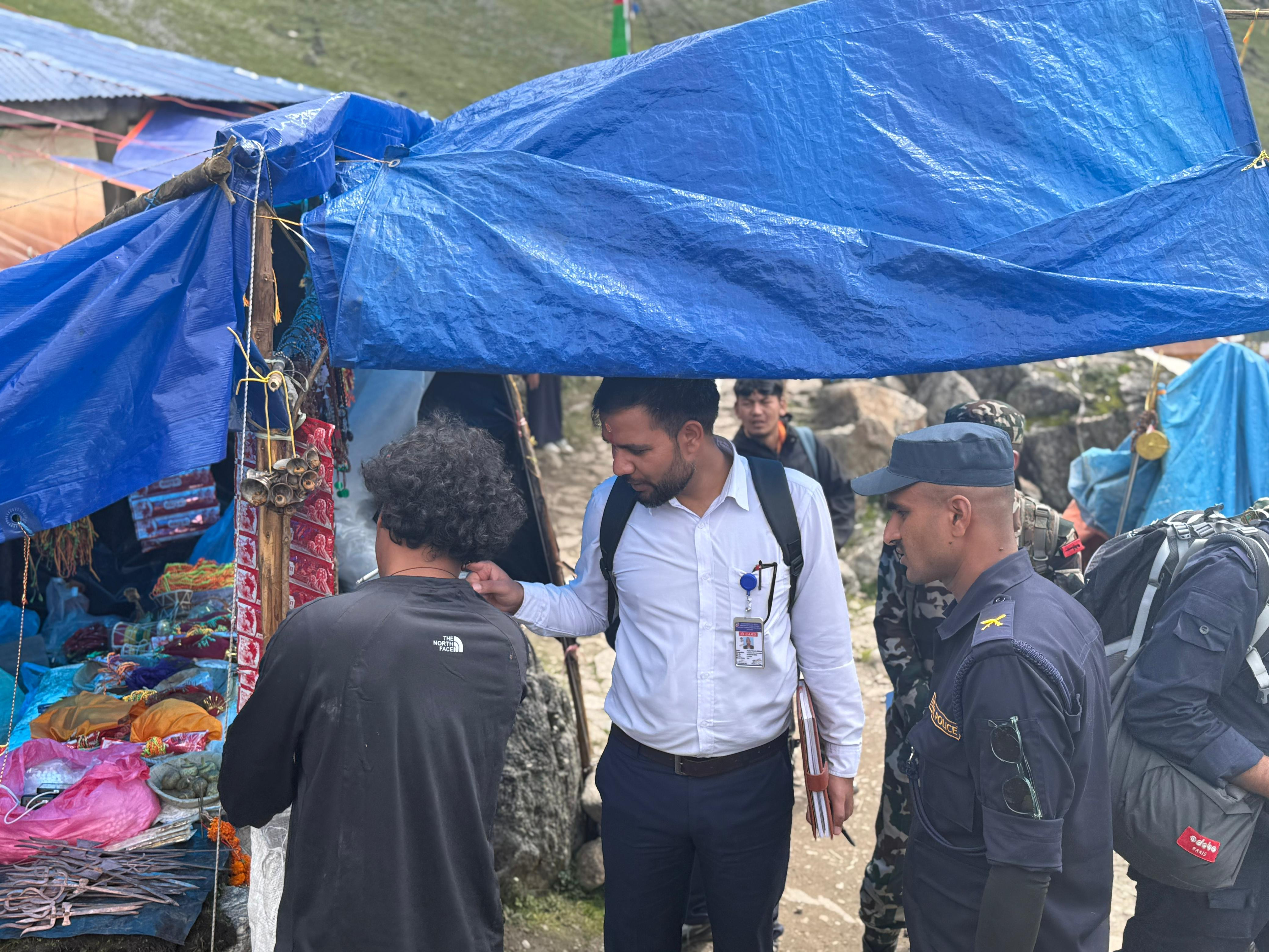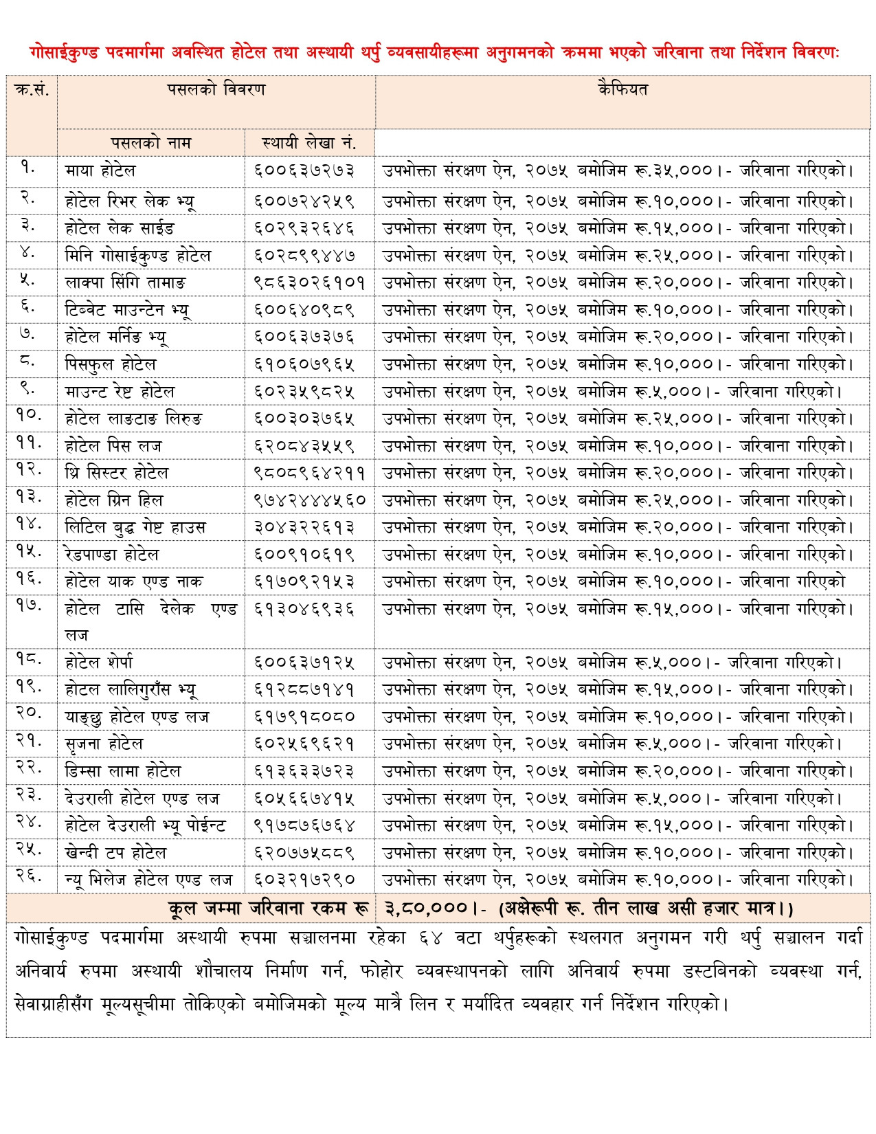 गोसाईकुण्ड पदमार्गमा अवस्थित स्थानीय होटल र थर्पुहरूको अनुमगन