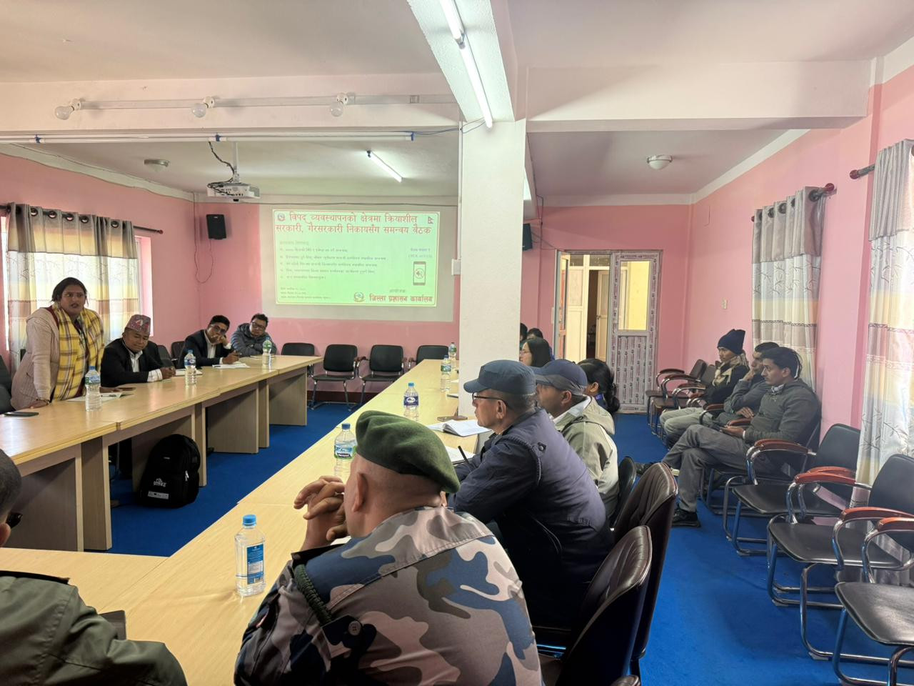 जिल्ला विपद् व्यवस्थापनको क्षेत्रमा क्रियाशील सरकारी र गै.स.स. निकायसँगको समन्वय बैठक सम्पन्न