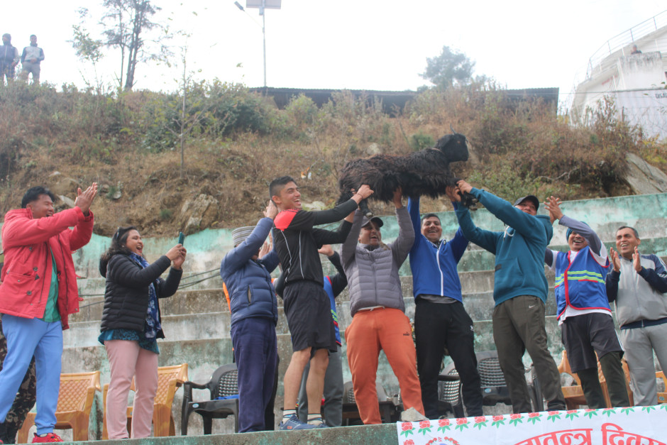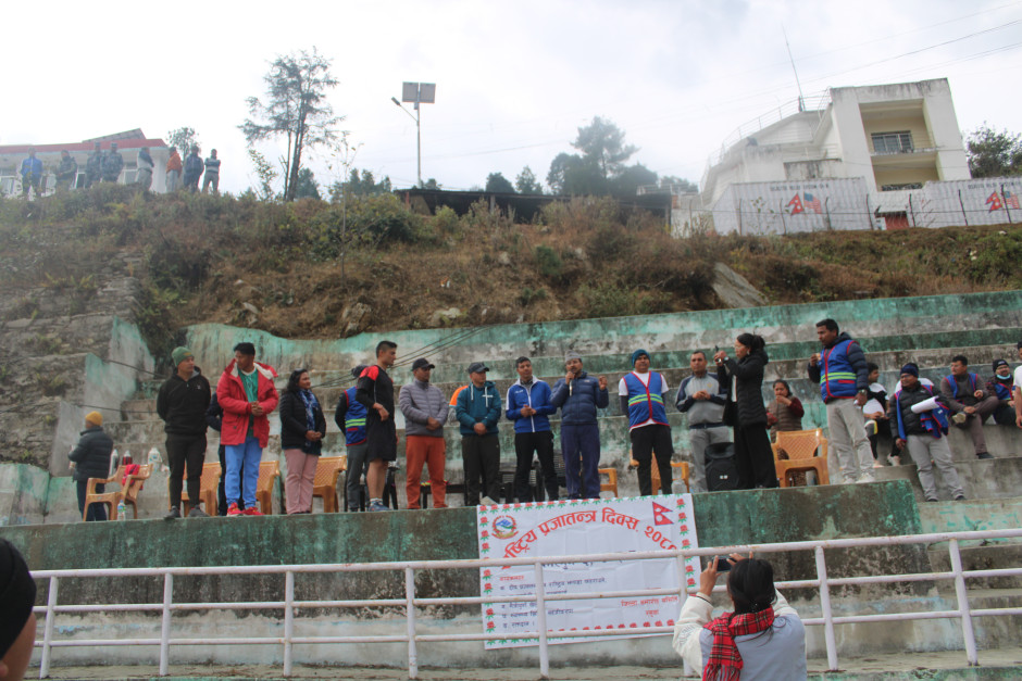 ७४औ राष्ट्रिय प्रजातन्त्र दिवस, २०८० जिल्लामा भव्य रुपमा मनाउने सन्दर्भमा जिल्ला समारोह समितिको बैठकबाट भएको निर्णयानुसार आज कर्मचारी मिलन केन्द्वारा निजामती कर्चारी र सुरक्षा निकायबीच मैत्रीपूर्ण फुटबल सम्पन्न भएको। मैत्रीपूर्ण खेलमा निजामती कर्मचारीको तर्फ टीमको कप्तानी, सहायक प्रमुख जिल्ला अधिकारी, श्री गंगा लाल याेगीले र सुरक्षा निकायको तर्फबाट टीमको कप्तानी प्रमुख सेनानी, श्री बिक्रम थापाज्यूले गर्नु भएको थियो। खेलमा सुरक्षा निकाय २-१ गाेलले बिजयी भएको ।