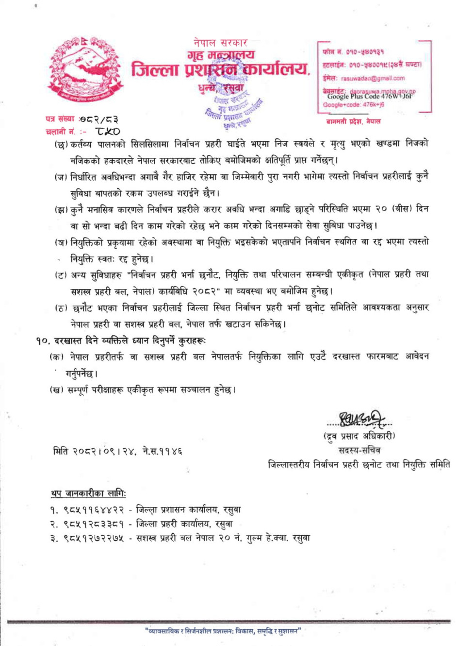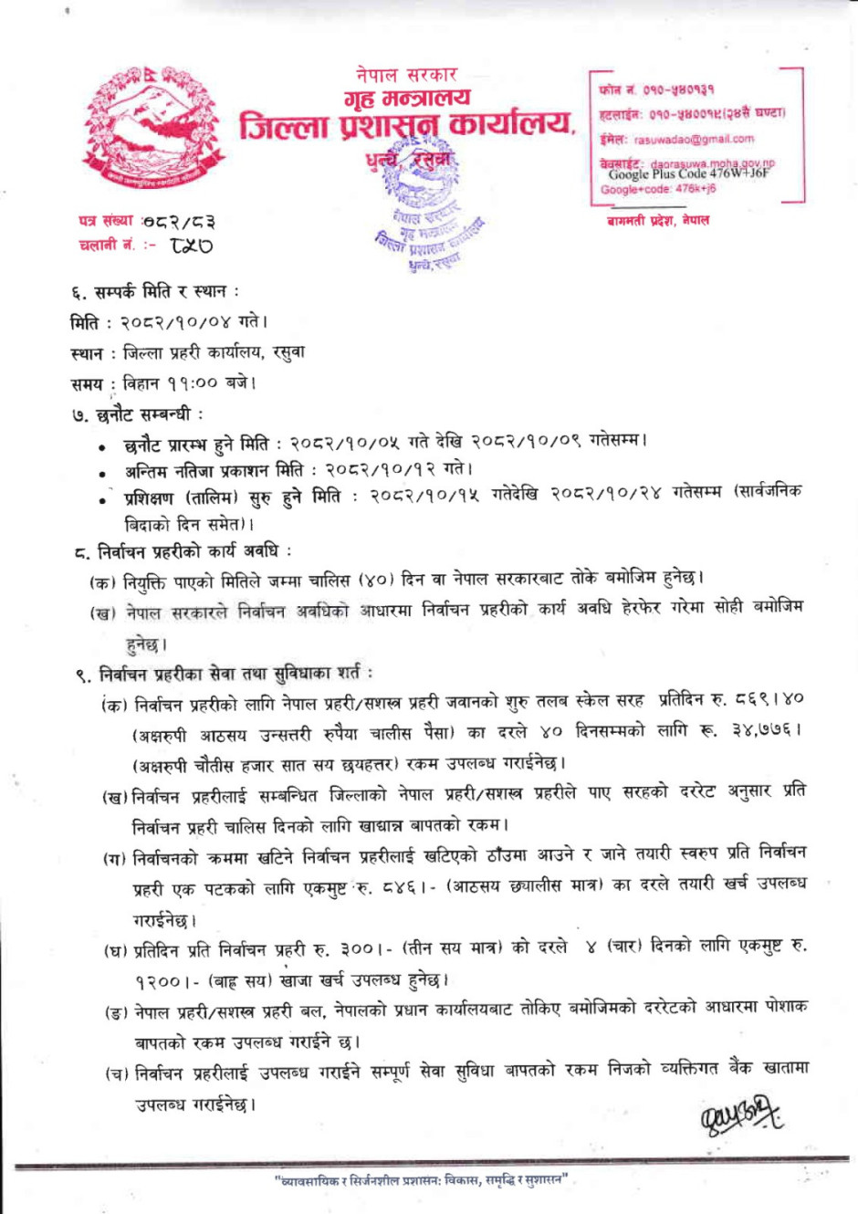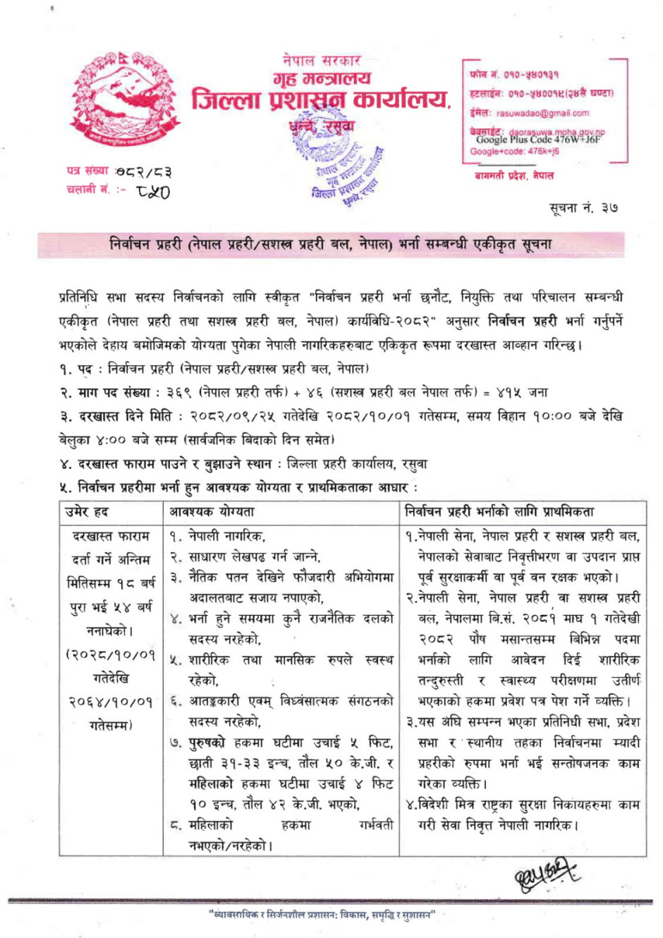 निर्वाचन प्रहरी (नेपाल प्रहरी/सशस्त्र प्रहरी)भर्ना सम्बन्धि एकीकृत सूचना: मिति:२०८२/०९/२४ गते