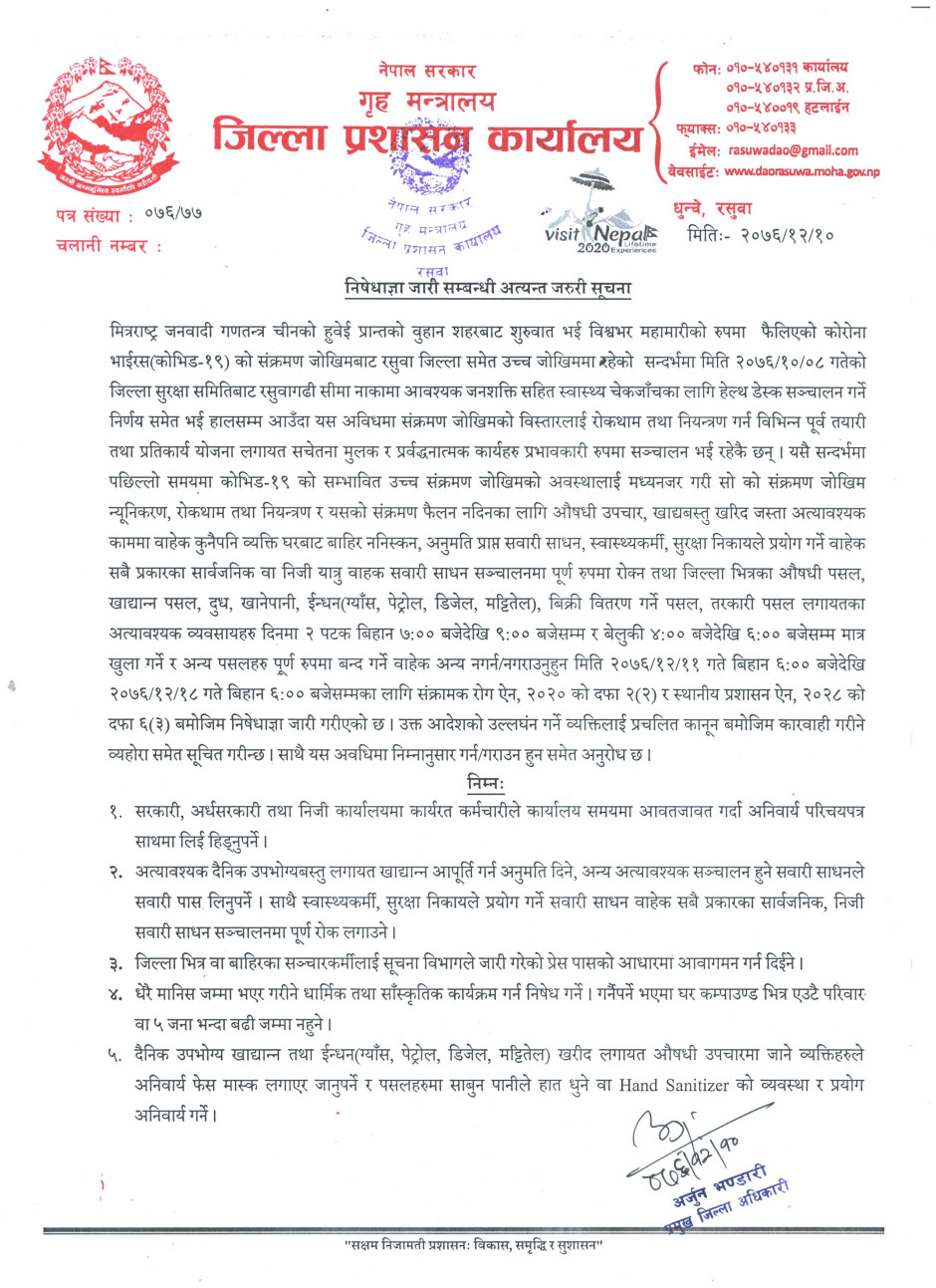 © सर्वाधिकार सुरक्षित जिल्ला प्रशासन कार्यालय, रसुवा