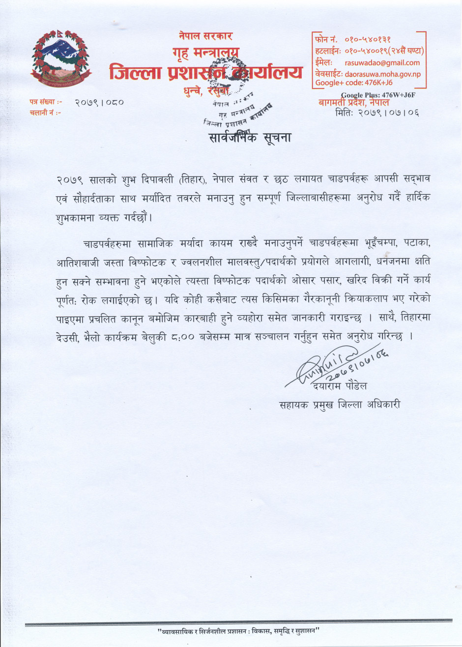 © सर्वाधिकार सुरक्षित जिल्ला प्रशासन कार्यालय, रसुवा