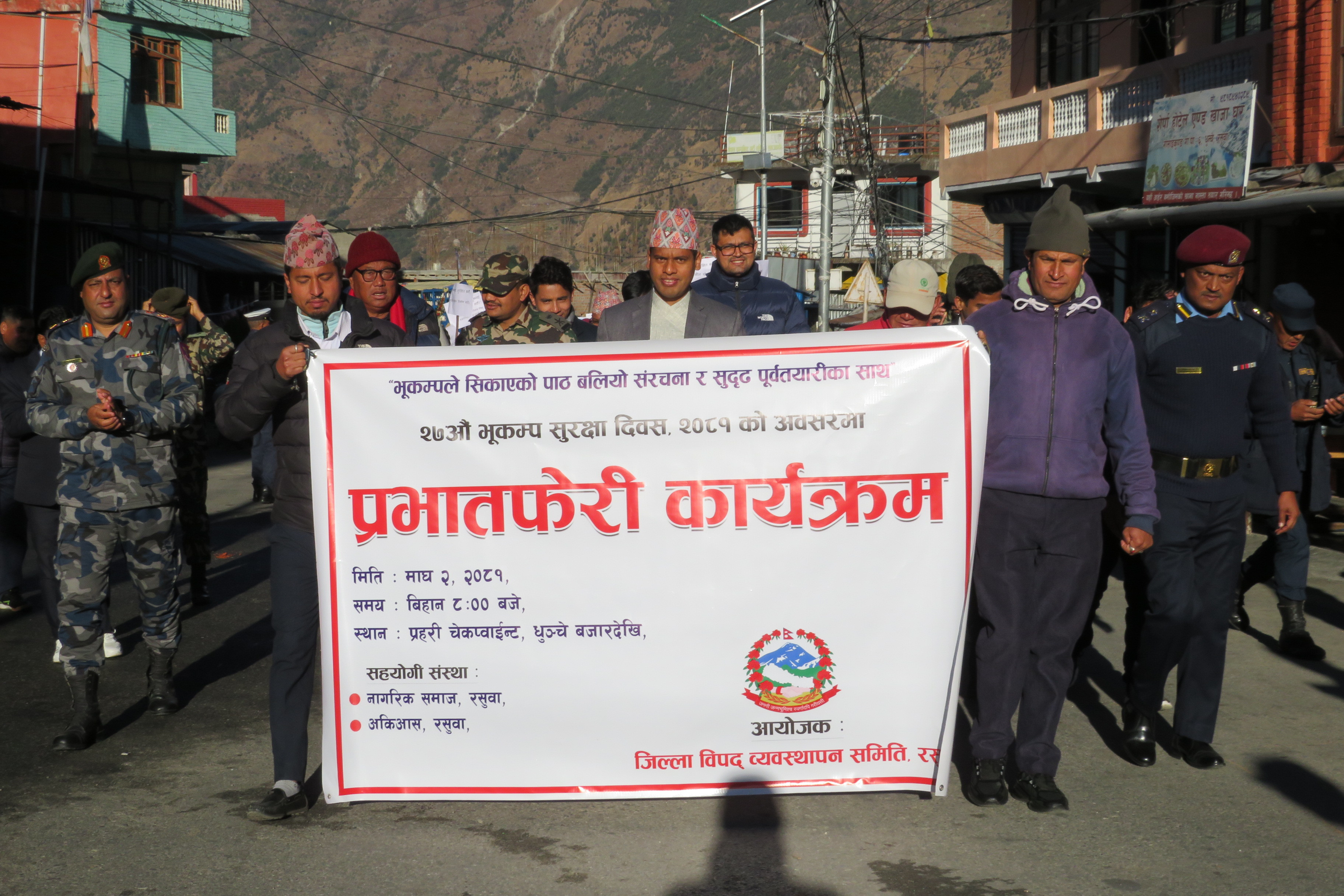 २७औं भूकम्प सुरक्षा दिवस, २०८१ को अवसरमा आयोजित प्रभातफेरी कार्यक्रम