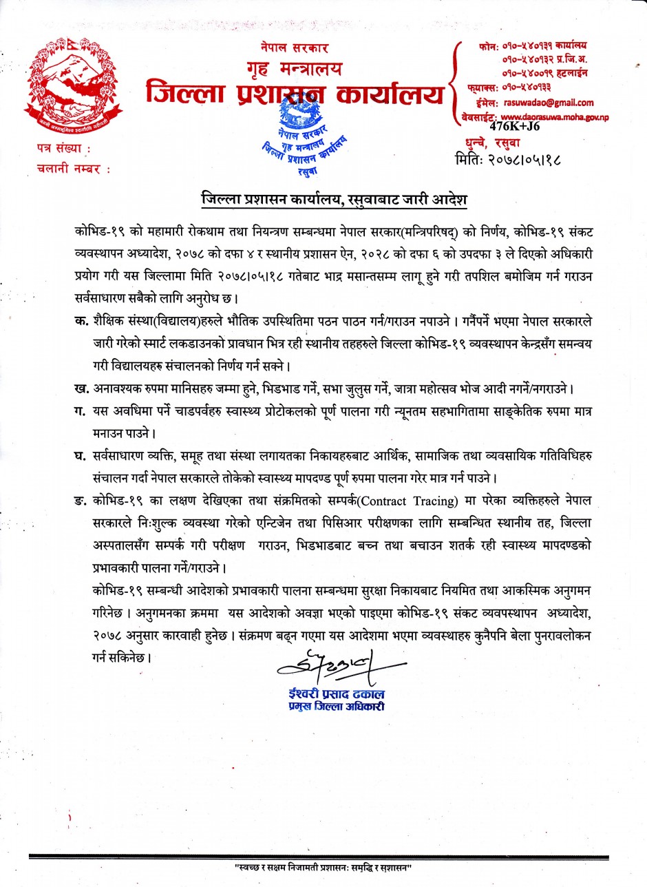 © सर्वाधिकार सुरक्षित जिल्ला प्रशासन कार्यालय, रसुवा