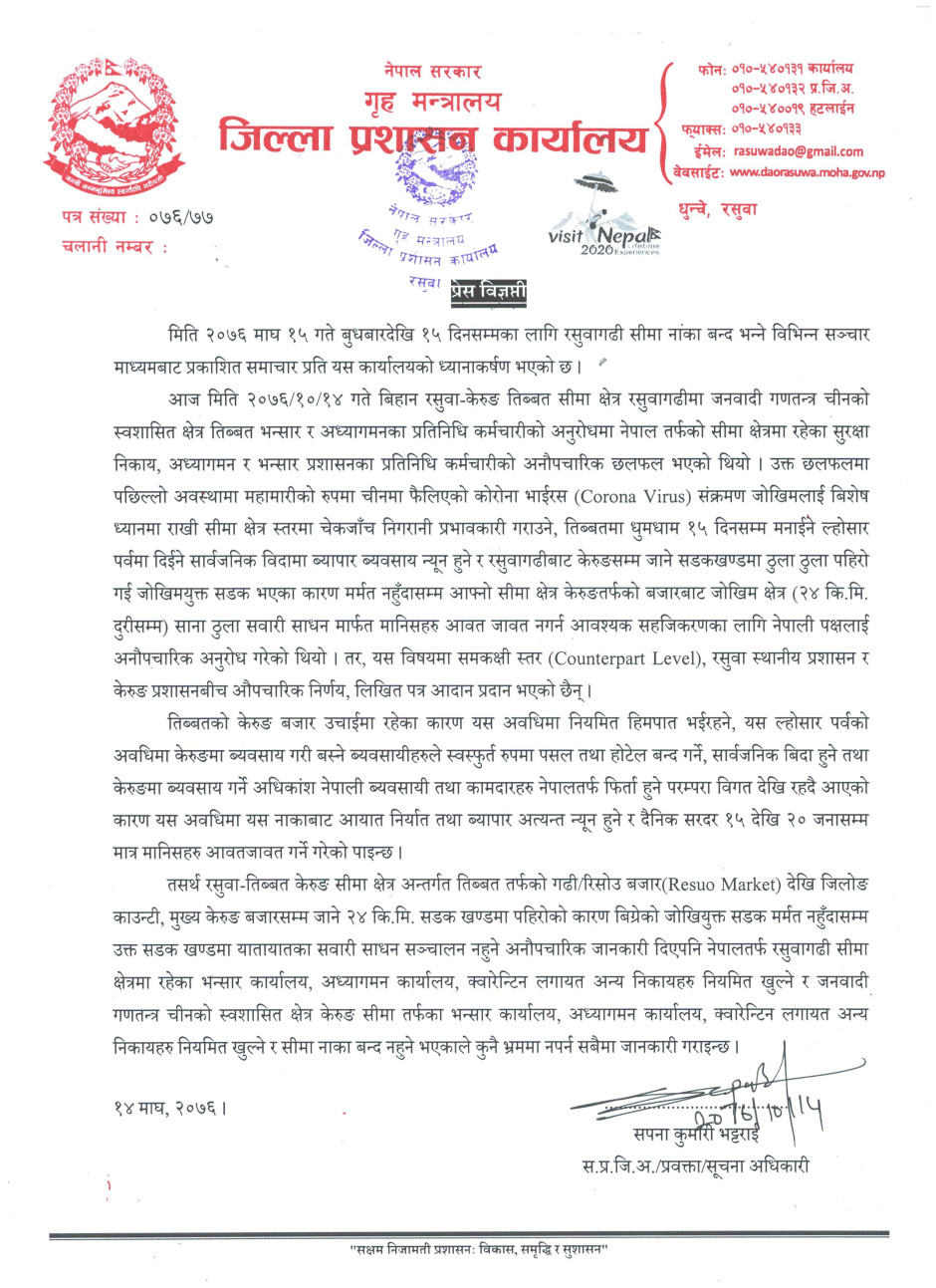 © सर्वाधिकार सुरक्षित जिल्ला प्रशासन कार्यालय, रसुवा
