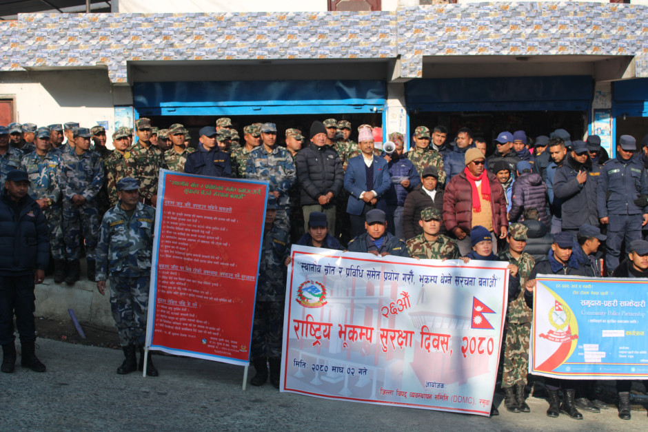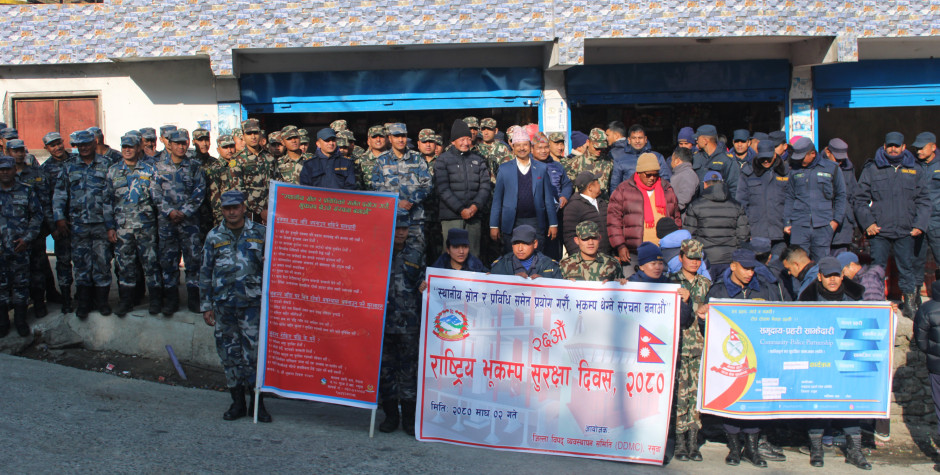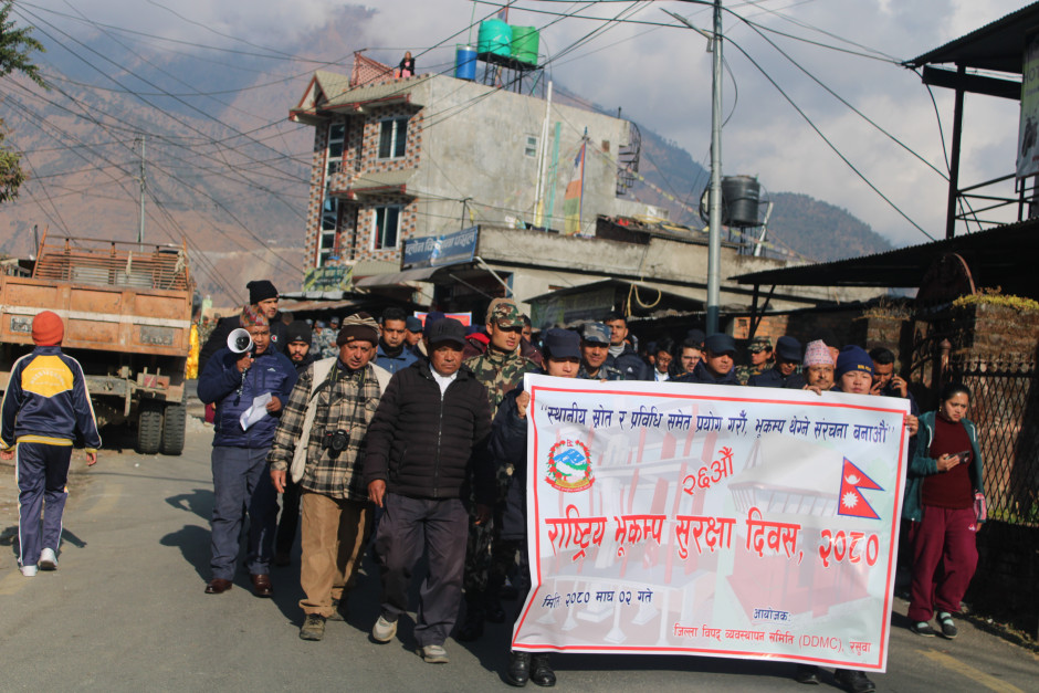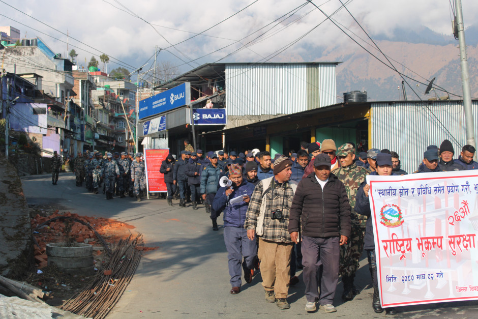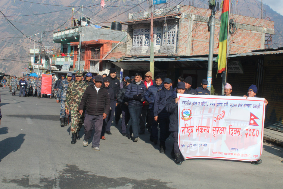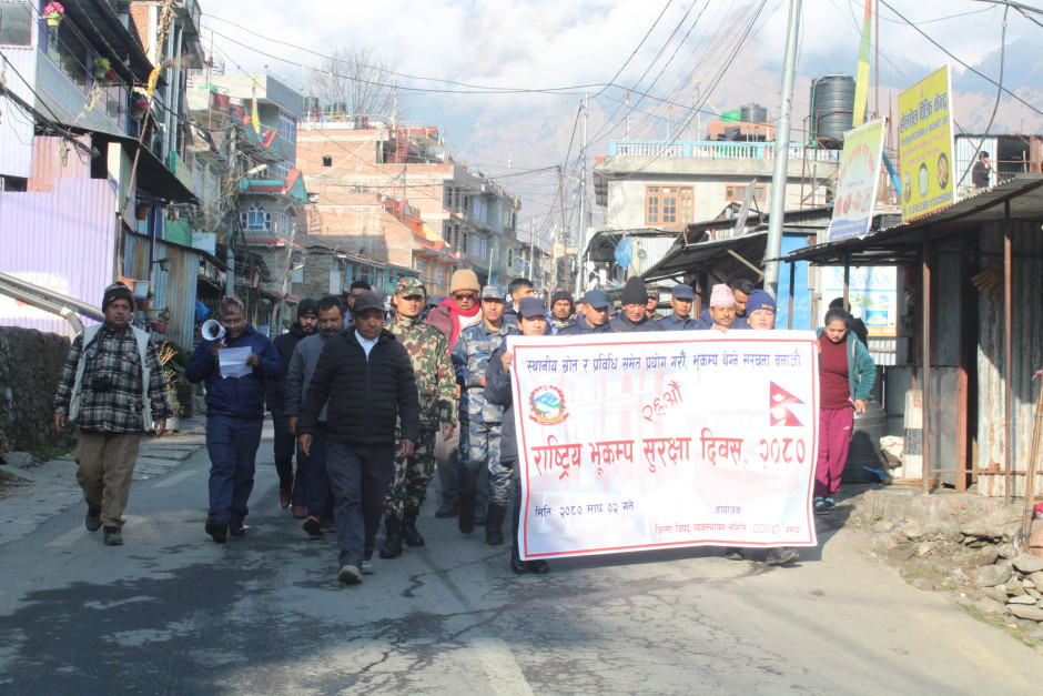 जिल्ला विपद् व्यवस्थापन समिति, रसुवाको आयोजनामा "स्थानीय स्रोत र प्रविधि समेत प्रयोग गरौ, भूकम्प थेग्ने संरचना बनाऔ" मूल नाराका साथ २६औ राष्ट्रिय भूकम्प सुरक्षा दिवस, २०८० को अवसरमा सचेतनामूलक प्रभातफेरी कार्यक्रम धुञ्चेबजारस्थित जिल्ला ट्राफिक प्रहरी एवं नेपाल प्रहरीको संयुक्त चेकप्वाईन्टबाट शुरुवात भई शिबमन्दिर घुम्तिमा प्रमुख जिल्ला अधिकारी एवं जिल्ला विपद् व्यवस्थापन समितिको अध्यक्ष श्री वेदनिधि खनालज्यूबाट सम्वोधन मन्त्वय सहित कार्यक्रम सम्पन्न भएको। कार्यक्रममा जिल्ला विपद् व्यवस्थापन समितिका पदाधिकारीहरु, स्थानीय सञ्चारकर्मी, जिल्लास्थित सरकारी कार्यालयका कार्यालय प्रमुख एवं प्रतिनिधि, राष्ट्रसेवक कर्मचारी, स्थानीयवासीहरुको सहभागिता रहेको थियो।