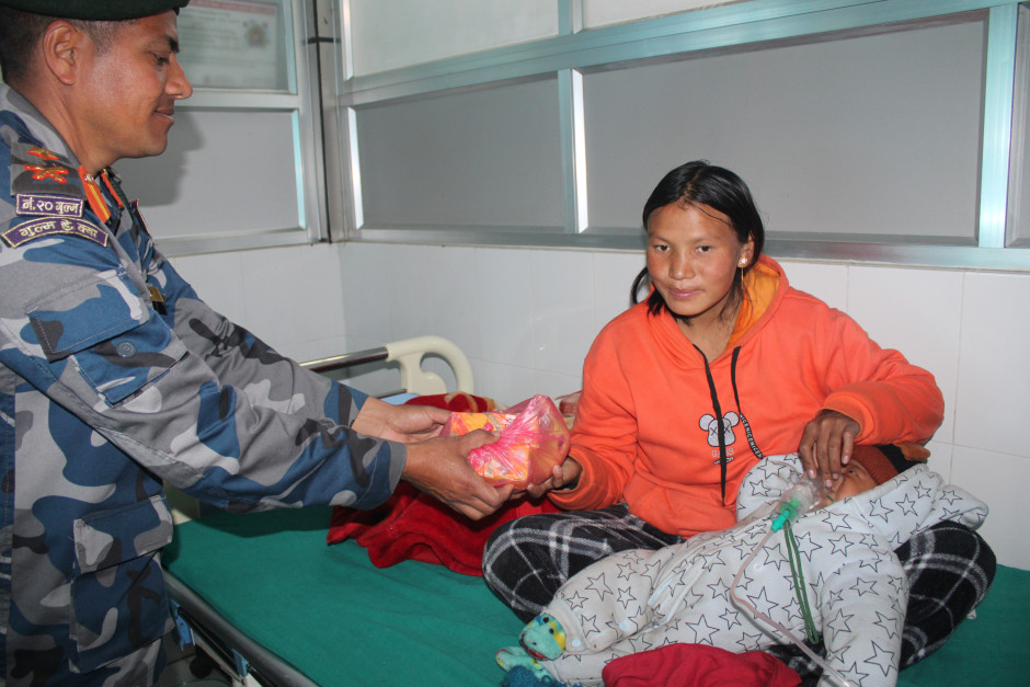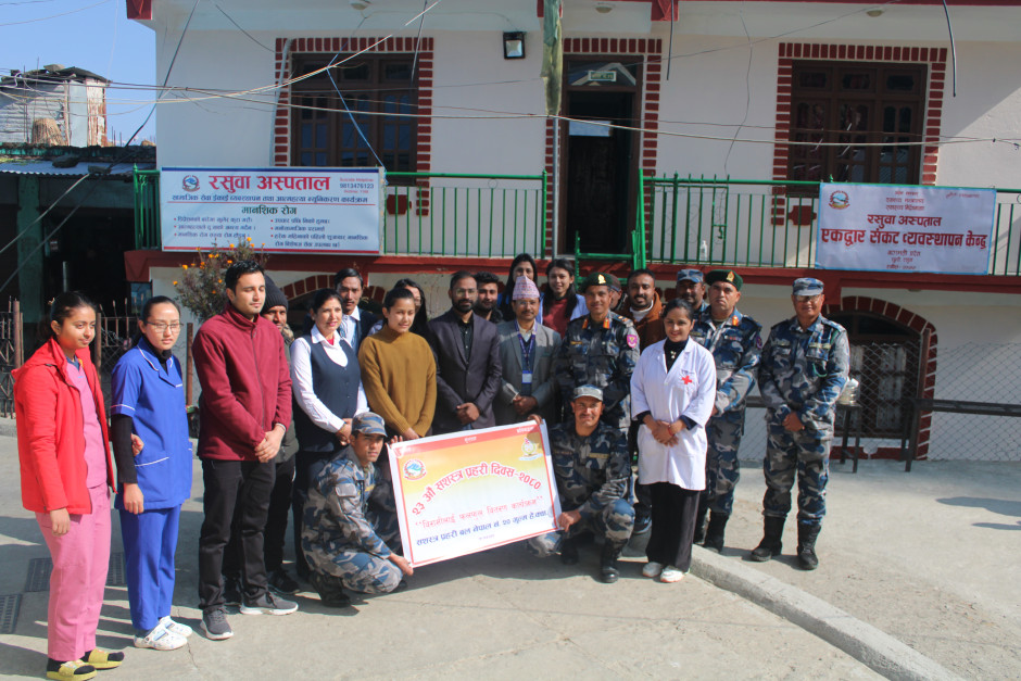 “२३औं सशस्त्र प्रहरी दिवस, २०८०” को अवसरमा सशस्त्र प्रहरी बल, नेपाल नं. २० गुल्म हेक्वा. रसुवाको आयोजनामा प्रमुख जिल्ला अधिकारी बेदनिधि खनालज्यूको प्रमुख आतिथ्यतामा रसुवाअस्पतालमा उपचारार्थ बिरामीहरुलाई फलफूल वितरण