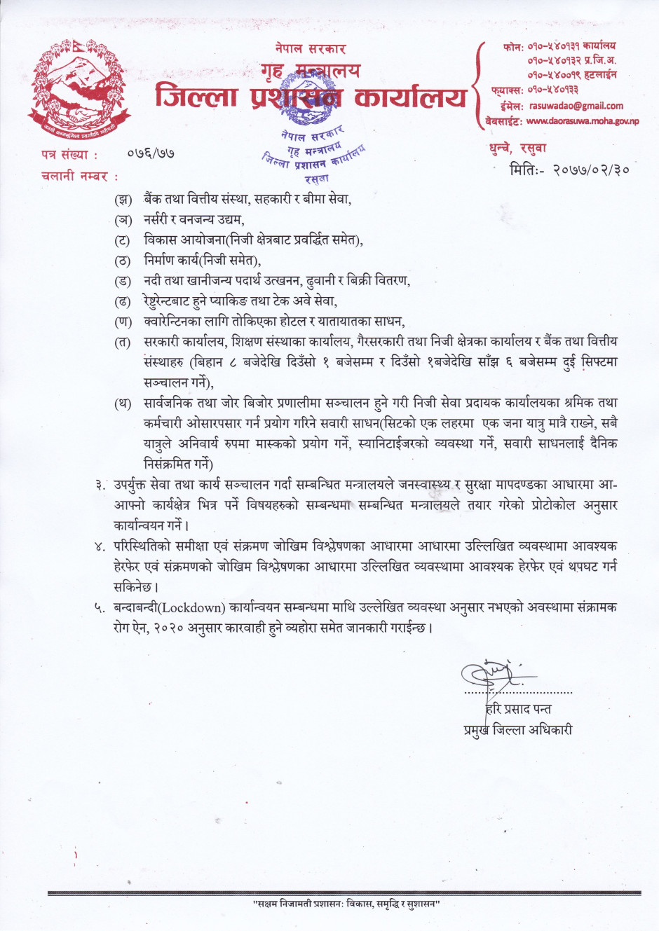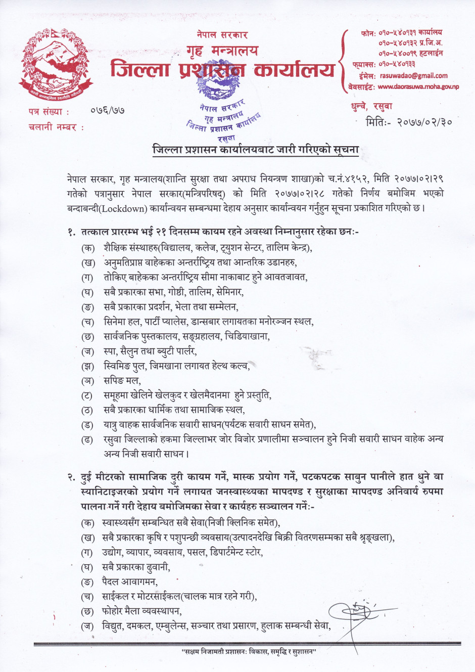 © सर्वाधिकार सुरक्षित जिल्ला प्रशासन कार्यालय, रसुवा