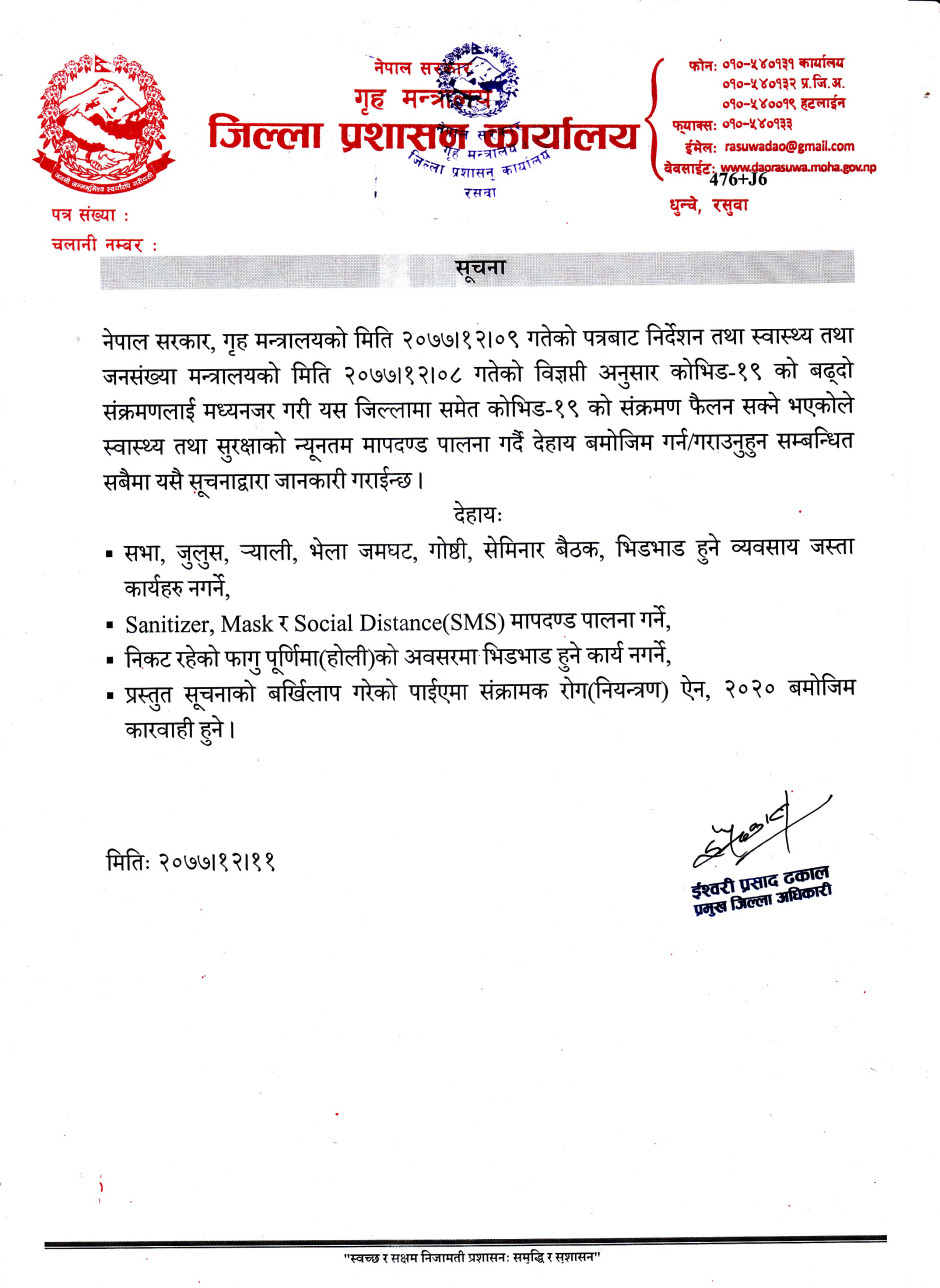 © सर्वाधिकार सुरक्षित जिल्ला प्रशासन कार्यालय, रसुवा