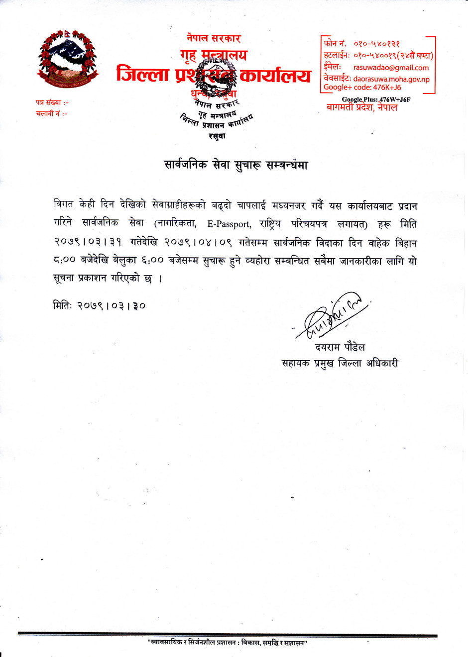 रसुवा_१३३८_कार्यालय समय परिवर्तन गरिएको सम्बन्धमा_२०८२।१२।२२