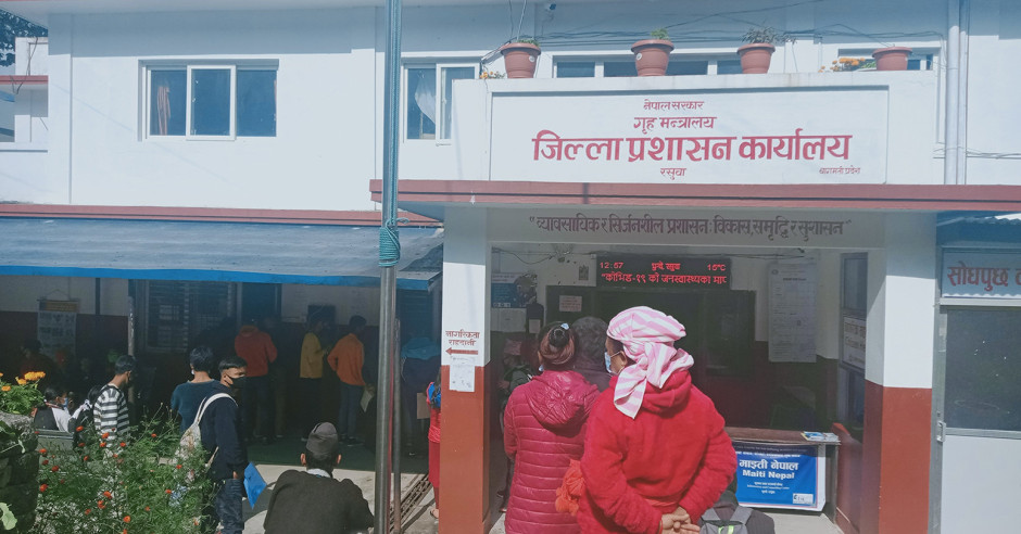 जिल्ला प्रशासन कार्यालय रसुवामा सेवाग्राहीको चाप बढेको छ। दसैँ सकिएर कार्यालय खुलेसँगै नागरिकता र पासपोर्ट बनाउने सेवाग्राहीको चाप बढेको हो।