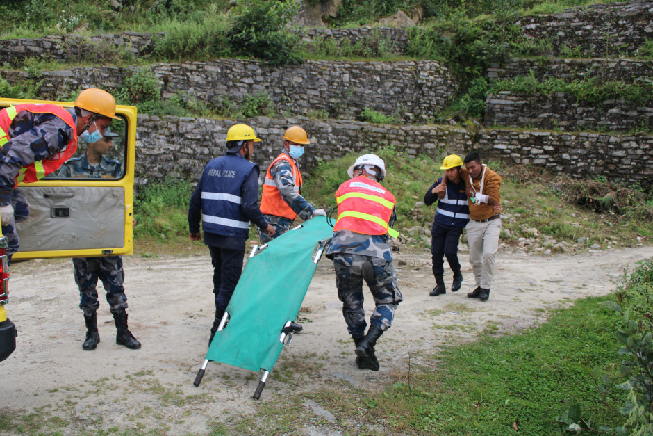 कार्यक्रममा भीरबाट खसेको यात्रु वाहक सवारी साधनभित्र रहेको घाईते यात्रुलाई घटनास्थलमा पुगी तत्काल घाईतेको बर्गीकरण गरी प्राथमिक उपचार पश्चात थप उपचारका लागि जिल्ला अस्ताल पुर्याईएको अभ्यासमा समेटिएको थियो।