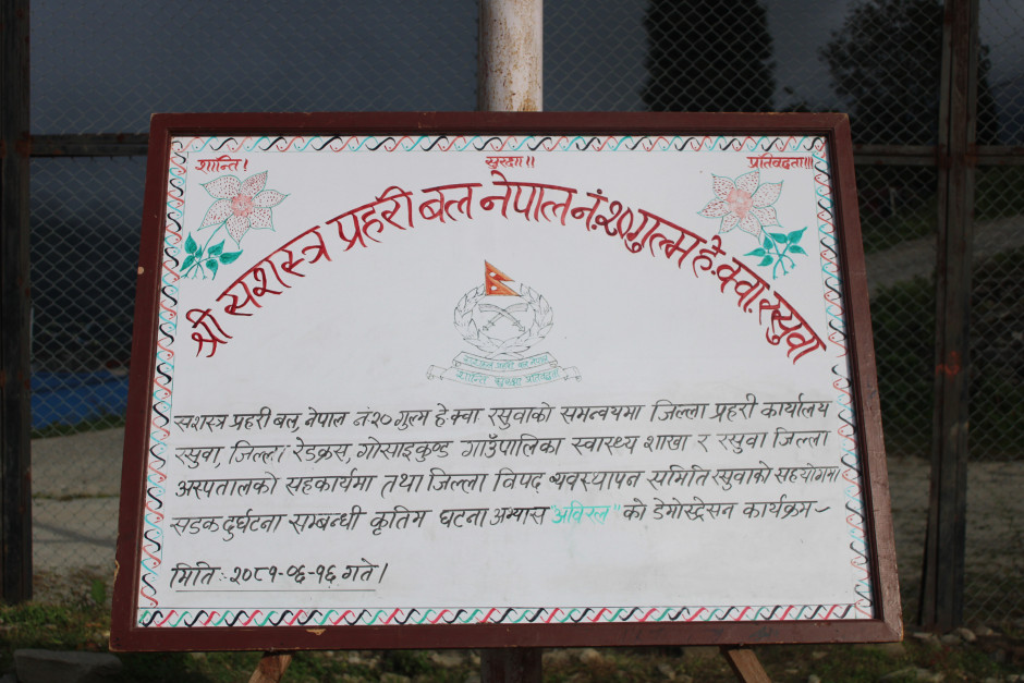 जिल्ला विपद् व्यवस्थापन समितिको सहयोग श्री सशस्त्र प्रहरी बल नेपाल, नं. २० गुल्म हे.क्वा., रसुवाको समन्वयमा जिल्ला प्रहरी कार्यालय, गोसाईकुण्ड गाउँपालिका(स्वास्थ्य शाखा), नेपाल रेडक्रश, रसुवा अस्पतालद्वारा सडक दुर्घटना सम्बन्धी कृतिम अभ्यास कार्यक्रम सम्पन्न।