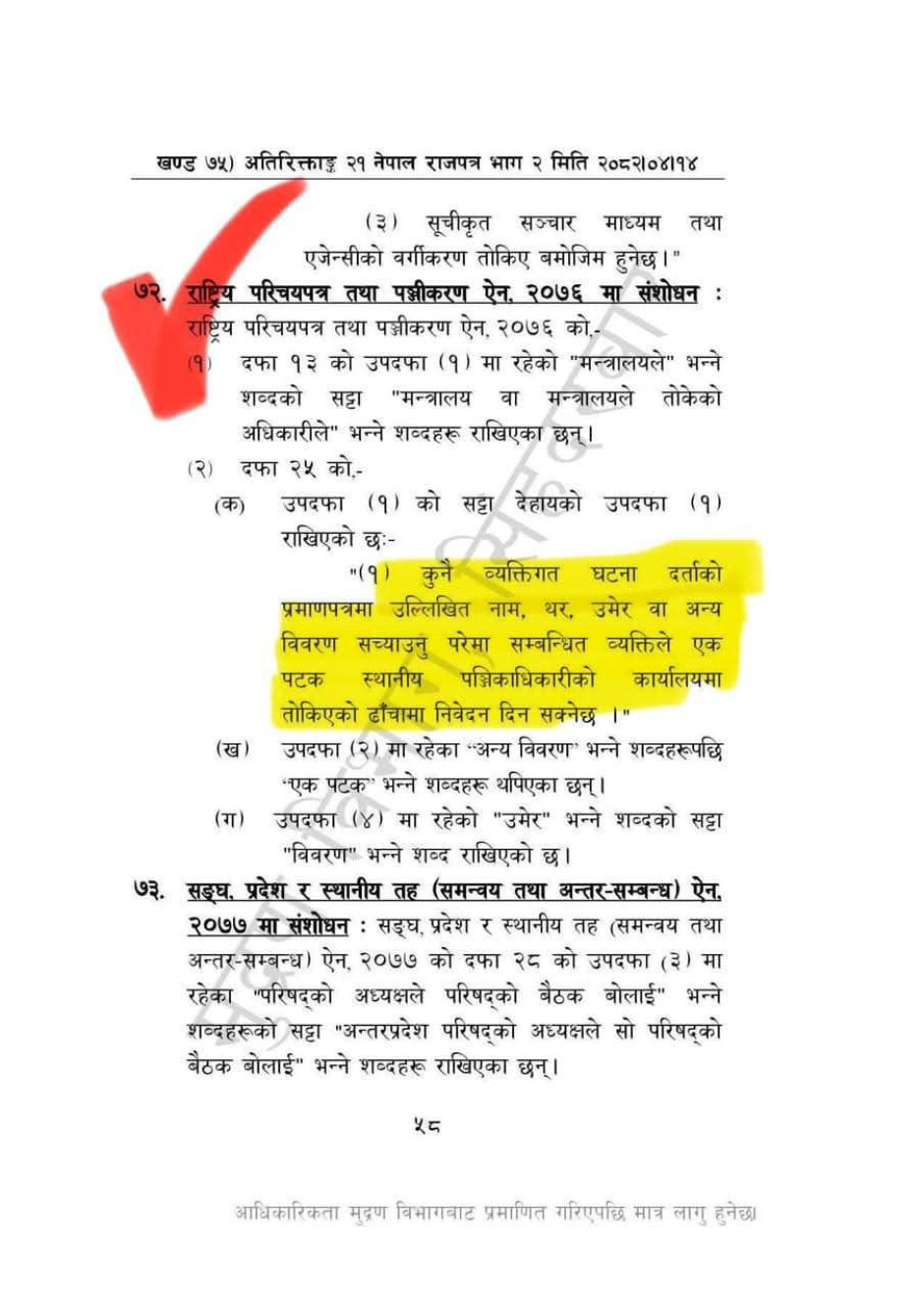 राष्ट्रिय परिचयपत्र तथा पञ्जीकरण विभागबाट जारी सूचना।